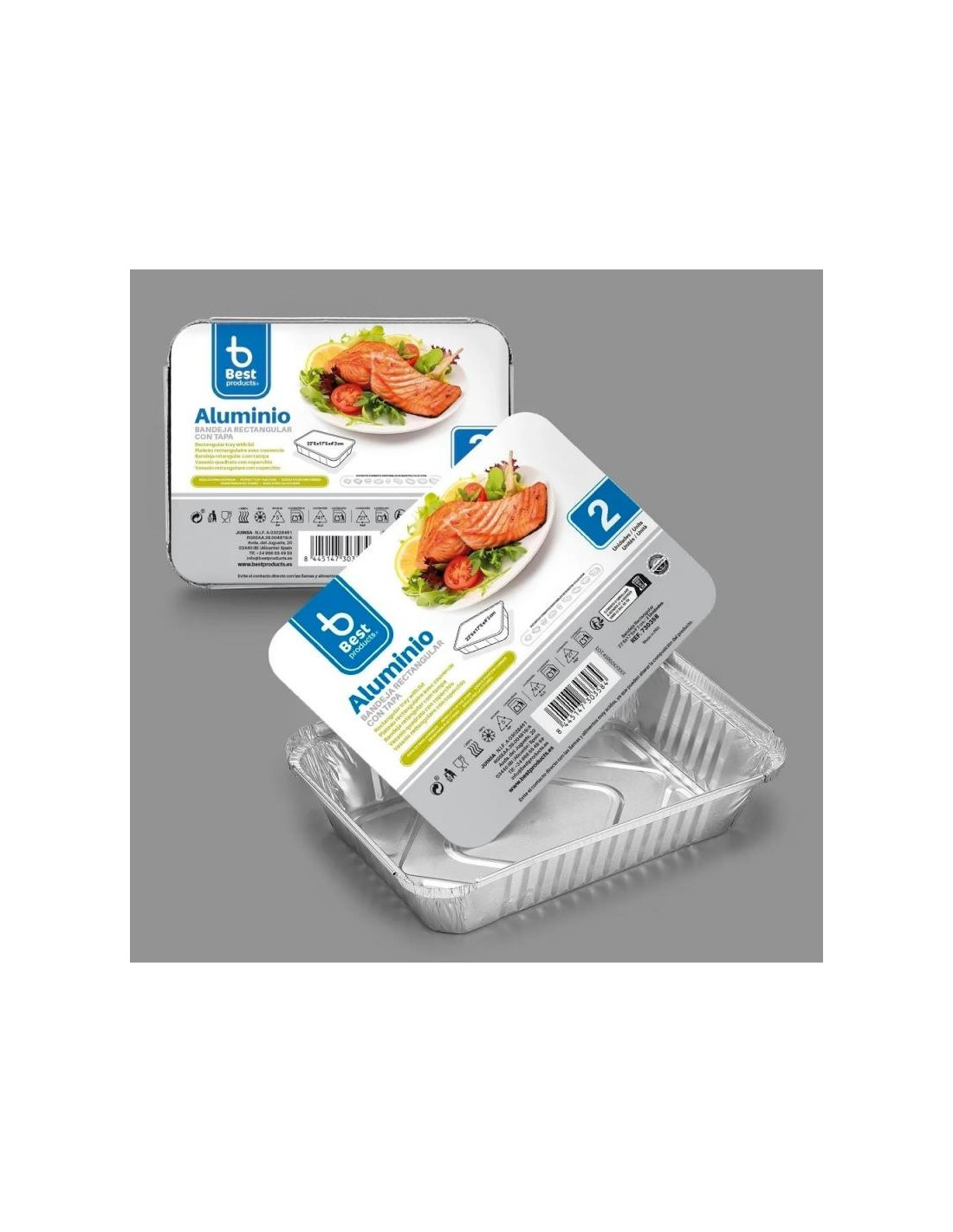 BANDEJA ALUMINIOX2 RECT.C/TAPA 22.5X17.50X4.20 730358