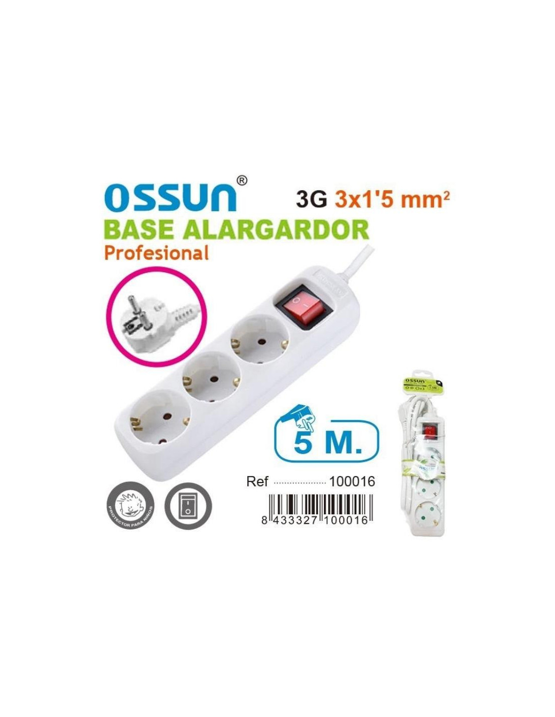 ALARGADOR C/INTERRUP. 5M 3 ENCHUFES 100016