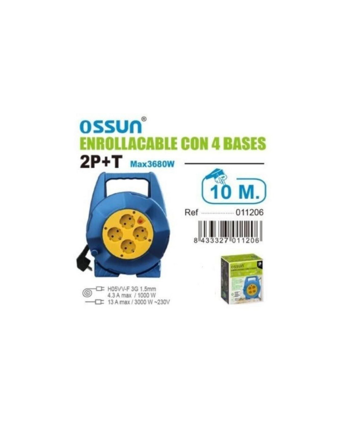ALARGADOR ENROLLABLE 4 ENCHUFES 10M 011206