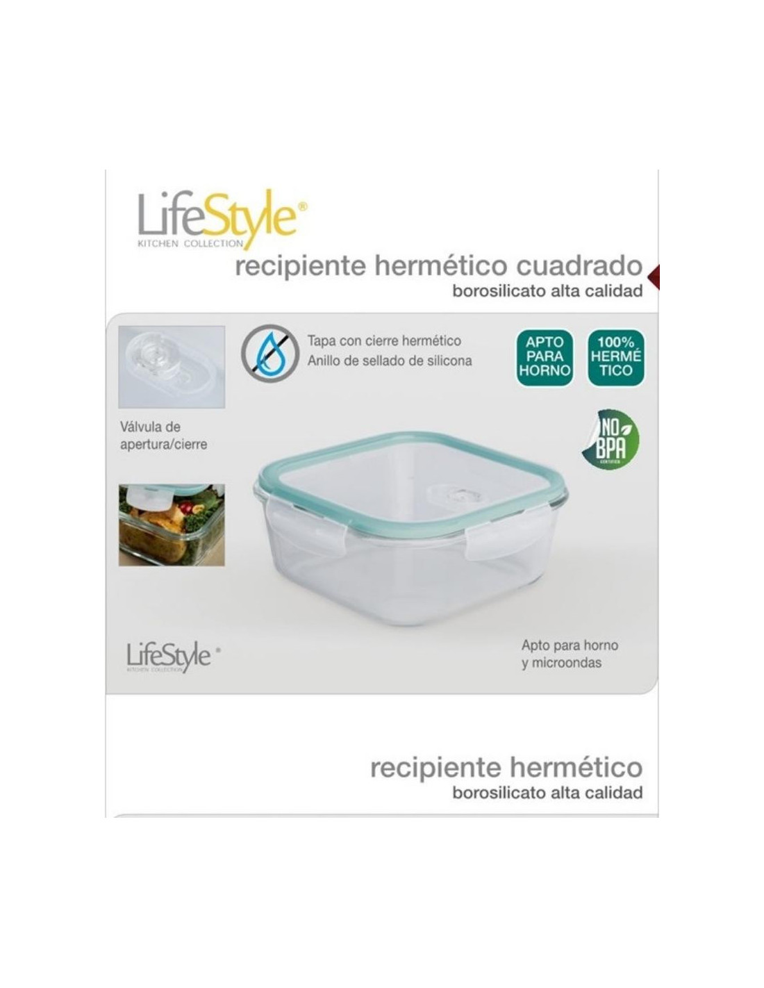 RECIPIENTE CUADRADO BOROSILICATO1200ML 4163